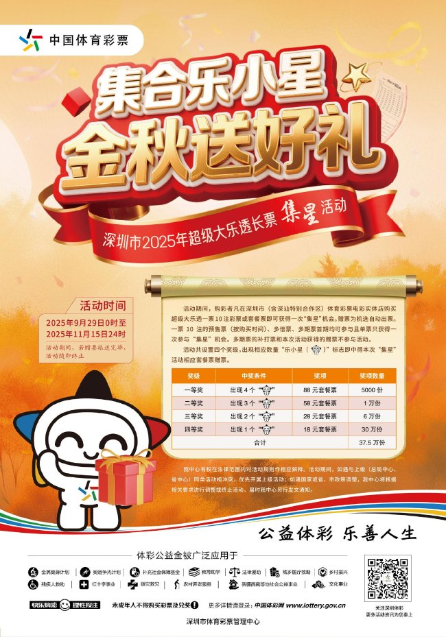 深圳体彩于2025年9月29日开启