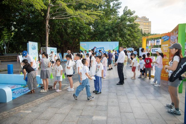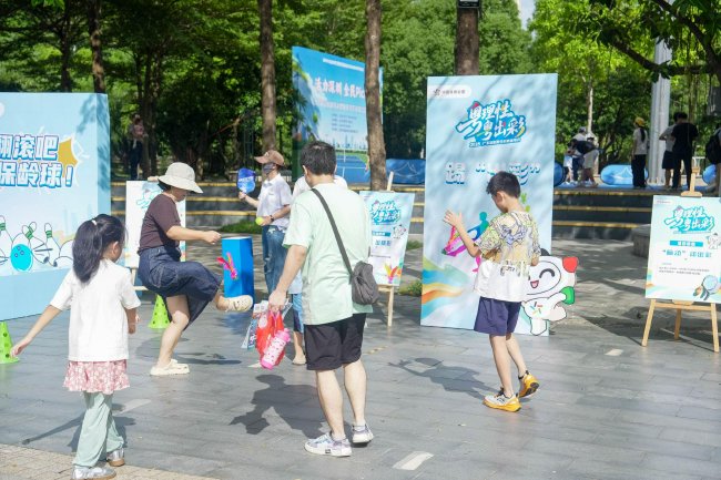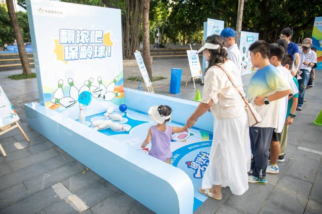 活动现场,四大互动项目——“脑动出彩”知识问答、“哐动时刻”趣味保龄球、“踢出精彩”互动毽子、“绕”出风采运球入框——吸引了不少市民的参与。“要答对问题才能开始挑战,这一下子就让我胜负欲上来了。”正在排队的张先生兴致勃勃地跟同行朋友分享道。