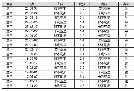 那不勒斯 VS 卡利亚里两队近10年的交战次数为18场,那不勒斯14胜3平1负,赢球概率为77.8%,平局概率为16.7%,输球概率为5.6%。