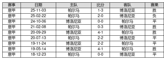 博洛尼亚 VS 帕尔马两队近10年的交战次数为9场,博洛尼亚4胜4平1负,赢球概率为44.4%,平局概率为44.4%,输球概率为11.1%。