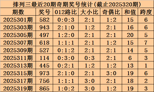 开奖回顾:排列三第2025320期奖号:725,定位直选遗漏值2期、10期、0期,遗漏总值为12期。