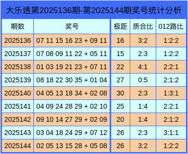第2025145期大乐透综合分析参考: