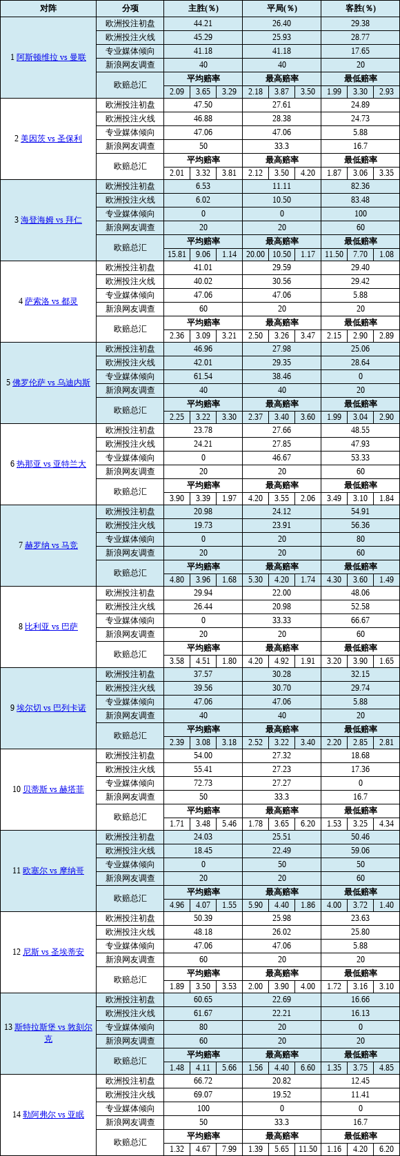 胜负彩25191期欧洲投注比例&网友调查及欧赔总汇