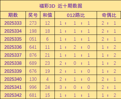 开奖回顾:福彩3D上期奖号为681,其中奖号012路比为1:1:1,和值为15,奇偶比1:2。