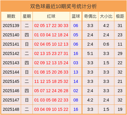 开奖回顾:双色球2025148开奖号码为03、04、09、10、15、22+16。其中大小比为1:5,和值为63。