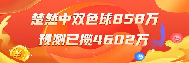 楚然双色球:上期预测中一等奖揽858万,前期累计预测中4602万!专家楚然上期预测双色球单挑一注命中4红球,25年预测曾2次擒双色球一等,2次中双色球二等,本期再冲一等![查看专家推荐]