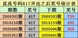 排列三直选617出现之后下期奖号分别为:739-835-656。