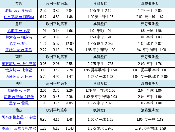 胜负彩26002期欧亚赔率对照:巴萨盘口存差异