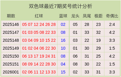 上期双色球的开奖号码中,首尾组合为02+33,极距为31,奇偶比为3:3。