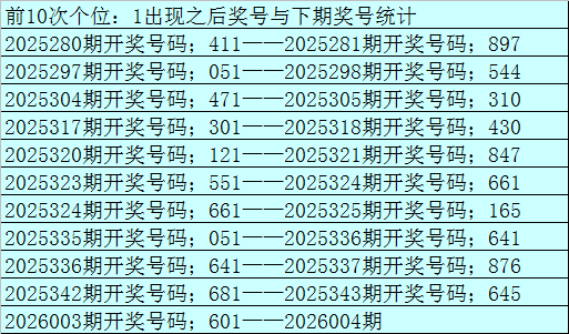 个位:上期开出号码1,遗漏11期,目前该位遗漏值最大的号码为4,遗漏25期,本期防止4解冻。
