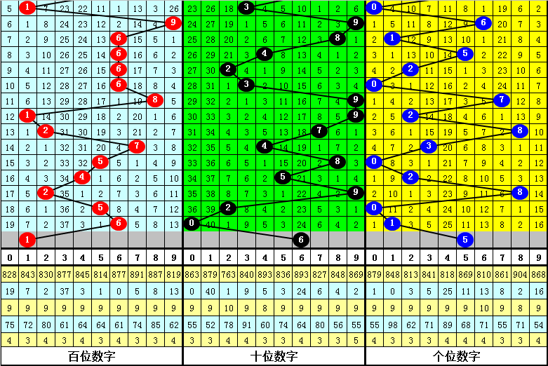 组选分析:在0-9的组选分布图中,最近10期0-2区段开出11个号码,3-6区段开出9个号码,7-9区段开出10个号码,上期7-9区间没有落号,本期重防前端号码热出,注意7-9号码断区。