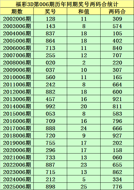 福彩3D第006期,历史上期开出24次奖号,其奖号分别为:128、143、837、864、713、255、020、037、560、242、882、457、992、053、709、888、720、755、296、733、887、715、212、898,奖号两码合差分别开出:
