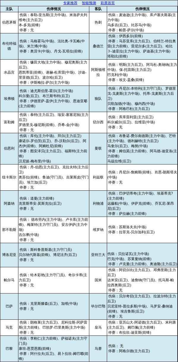 伤停点评:胜负彩第26004期由英超、意甲、西超杯和法超杯赛事组成。英超赛场,桑德兰5大主力受国家队征召参加非洲杯,维拉三大主力伤缺,曼联失8员大将。意甲赛场,那不勒斯4大主力伤缺,亚特兰大2大主力远战非洲杯。西超杯赛场,皇马主力前锋姆巴佩因伤缺席。法超杯赛场,巴黎5员大将缺席。