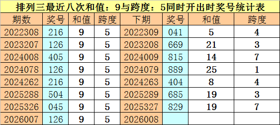 开奖回顾:体彩排列三第2026007期奖号为:126。和值为:9,跨度为:5。