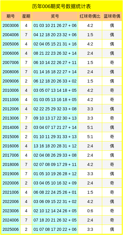 红五球:在历史同期开奖中分布在14-32区间,其中号码奇偶比为7:16,最近5年开奖中号码奇偶比为1:4,偶数号码表现活跃,今年第006期看好偶数号码走热,预测将会开出30。
