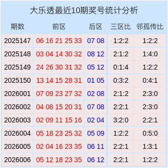 大乐透近10期奖号数据统计图表