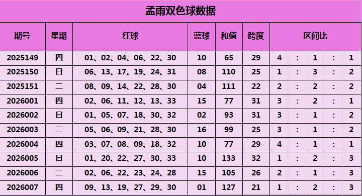 孟雨双色球本期推荐: