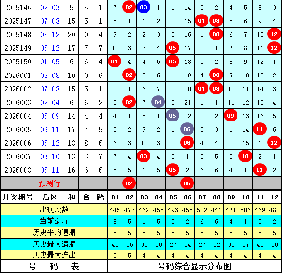 上期开奖:大乐透第2026008期开奖:03、06、17、21、33+05、11,前区012路比为4:0:1,奇偶比为4:1,五区比为2:0:2:0:1,大小比为2:3。