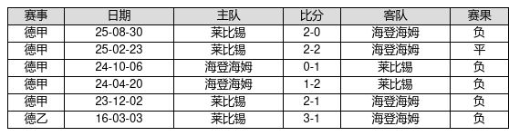 海登海姆 VS 莱比锡两队近10年的交战次数为6场,海登海姆0胜1平5负,赢球概率为0.0%,平局概率为16.7%,输球概率为83.3%。
