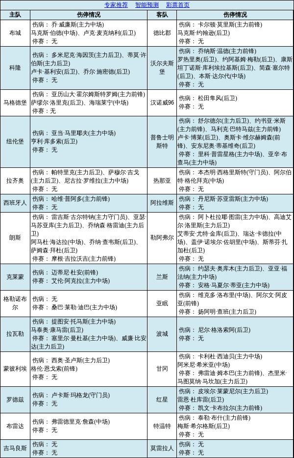 足彩伤停:普鲁士明斯特俩主力停赛 朗斯伤员多