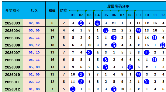后区号码分析:后区开出奇偶组合01,06。近10期奇偶比9:11,偶数号码热度较高。本期预测奇偶组合01,08。