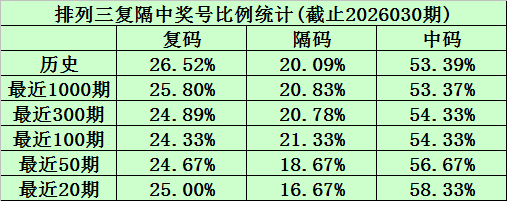 本期号码复隔中比例参考0:1:2。