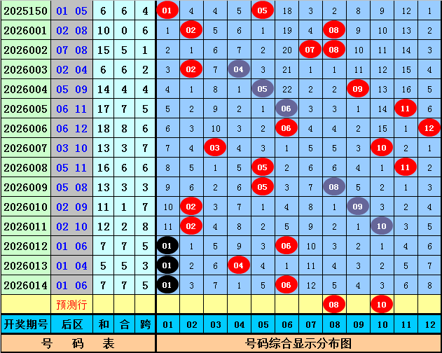 后区分析:上期后区开出号码01和06,最近10期后区奖号奇偶比为9:11,大小比为7:13,本期后区看好号码04、06、07、08、10,后区单挑两码08、10。