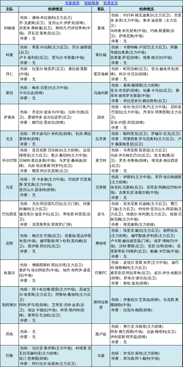 足彩伤停:皇马遭遇伤病潮 曼城失3大主力