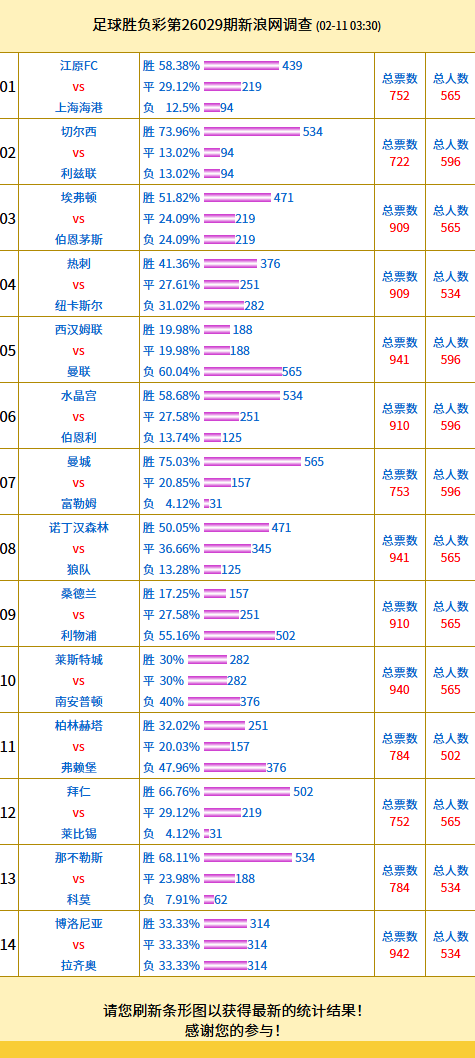 投票调查:曼城支持率75% 博洛尼亚胜平负得票均等
