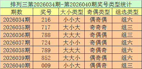 排列三第2026040期回顾:奖号009,奇偶比1:2,大小比1:2,和值9,类型:组三。