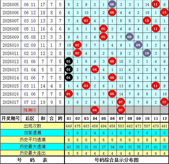 后区五码推荐:04 07 10 11 12