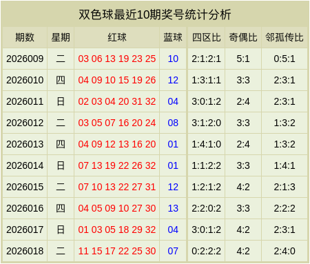 其中红球四区比为0:2:2:2,奇偶比为4:2,邻孤传比2:4:0。