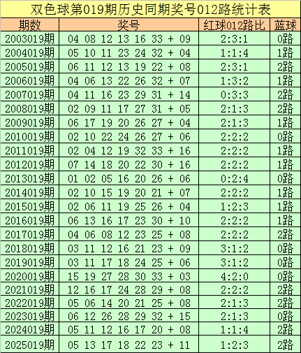 福彩双色球第2026019期历史同期王守礼012路奖号遗漏分析:
