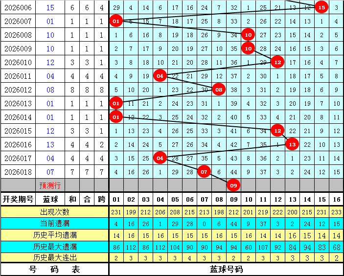 和值跨度分析:上期和值开出120,对比第2026017期和值上升了32个点位,本期预计和值在大号区域热出,看好出现在110附近。