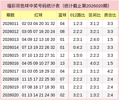红球三区比1:3:2,质合比为2:4,012路比为3:2:1,蓝球为质数、2路号码。