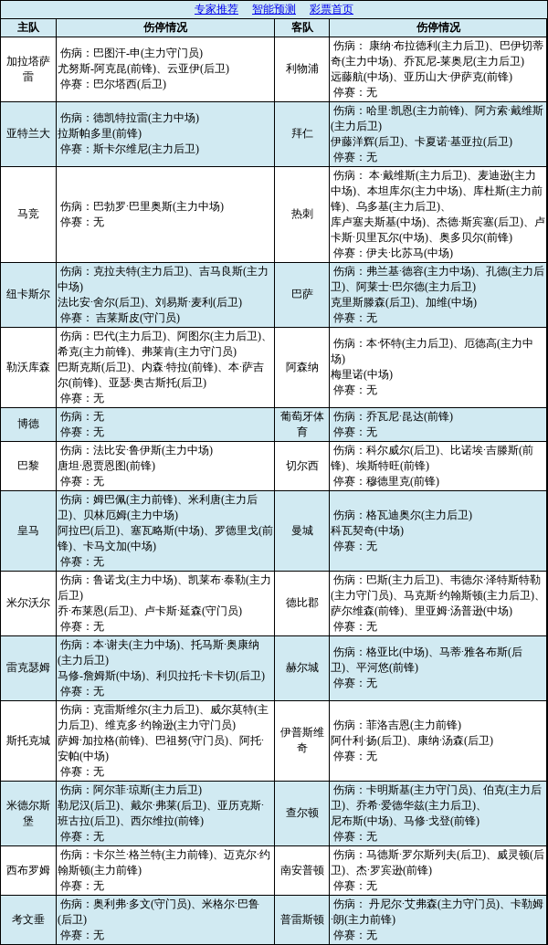 伤停点评:胜负彩第26039期由欧冠和英冠赛事组成。欧冠赛场,利物浦三大主力伤缺,亚特兰大主力后卫斯卡尔维尼因附加赛红牌本场停赛。热刺失5大主力,9员大将缺席。勒沃库森四大主力缺席,皇马姆巴佩和贝林厄姆均因伤缺阵。英冠赛场,德比郡失3大主力,斯托客场6员大将因伤缺席。