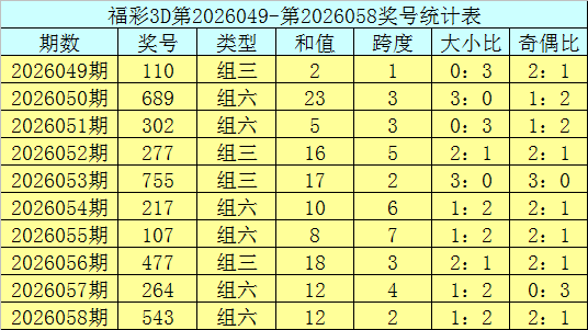 开奖回顾:福彩3D第2026058期奖号:543。