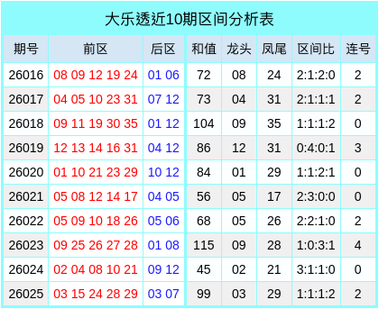 连码分析:上期前区开出连号组合28,29,在最近10期开奖中,有6期奖号包含了连码组合,连码的出现率较高。预计本期连码会开出,关注连码06,07。