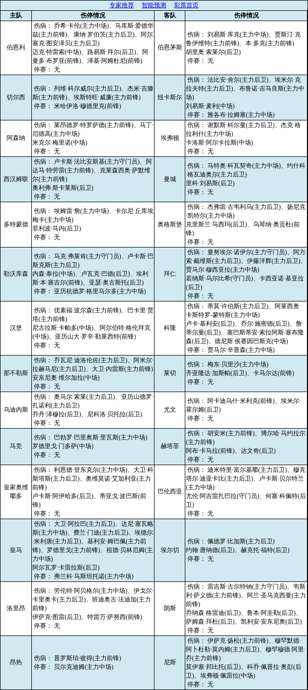 伤停点评:胜负彩第26041期由英超、德甲、意甲、西甲、法甲组成。英超赛场,伯恩利4名主力因病缺阵,曼城中后场两大主力后卫伤缺。德甲赛场,拜仁失4名主力,勒沃多达8人缺阵。意甲方面,那不勒斯失三大主力;西甲赛场,皇马