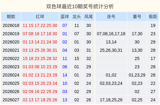 上期的奖号中开出2枚重号02,25,开出2组连号17,18,25,26,开出的奖号极距为24。