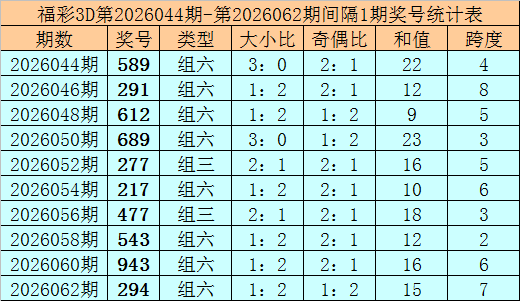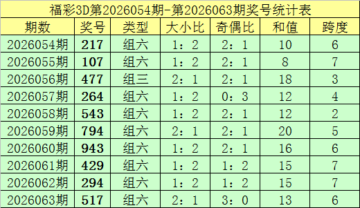 其中大小比2:1,奇偶比3:0,和值13,跨度6。