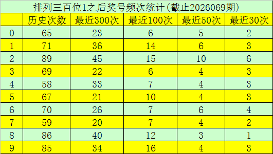 第一位杀号:上期第一位奖号为1,第一位奖号1历史上出现720次,前100次该位开出奖号1之后,下期号码0-9出现次数从高到底分别为:号码9→16次,2→15次,1→14次,8→12次,5→10次,4、6、7→7次,0、3→6次。