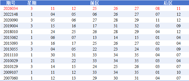 北京时间4月1日晚,体彩大乐透第26034期开奖,当期开奖号码为前区11 12 25 26 27,后区08 11。当期前区开出了2连码+3连码的组合形态,这在大乐透开奖中十分罕见,也是近4年首现!