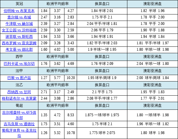 胜负彩26052期欧亚赔率对照:牛津联盘口存差异