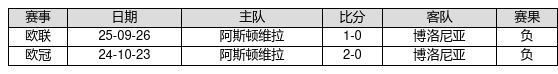 博洛尼亚 VS 阿斯顿维拉两队近10年的交战次数为2场,博洛尼亚0胜0平2负,赢球概率为0.0%,平局概率为0.0%,输球概率为100.0%。