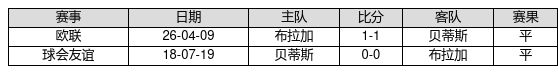 贝蒂斯 VS 布拉加两队近10年的交战次数为2场,贝蒂斯0胜2平0负,赢球概率为0.0%,平局概率为100.0%,输球概率为0.0%。