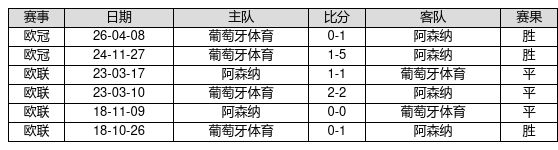 阿森纳 VS 葡萄牙体育两队近10年的交战次数为6场,阿森纳3胜3平0负,赢球概率为50.0%,平局概率为50.0%,输球概率为0.0%。