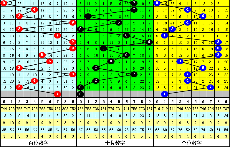 百位分析:该位上期开出号码2,最近10期该位012路比为4:2:4,其中2路号码间隔2期再次出现,本期可以放弃2路号码,注意1路号码开出,参考7。