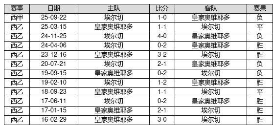 皇家奥维耶多 VS 埃尔切两队近10年的交战次数为12场,皇家奥维耶多6胜2平4负,赢球概率为50.0%,平局概率为16.7%,输球概率为33.3%。