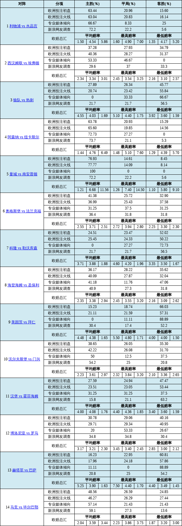 胜负彩26067期欧洲投注比例&网友调查及欧赔总汇